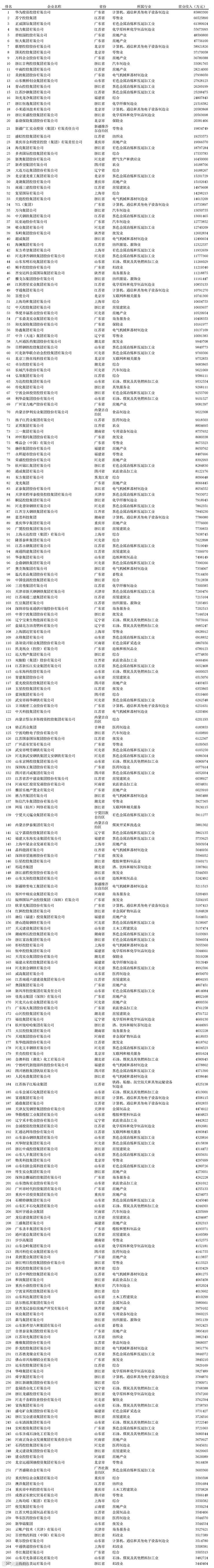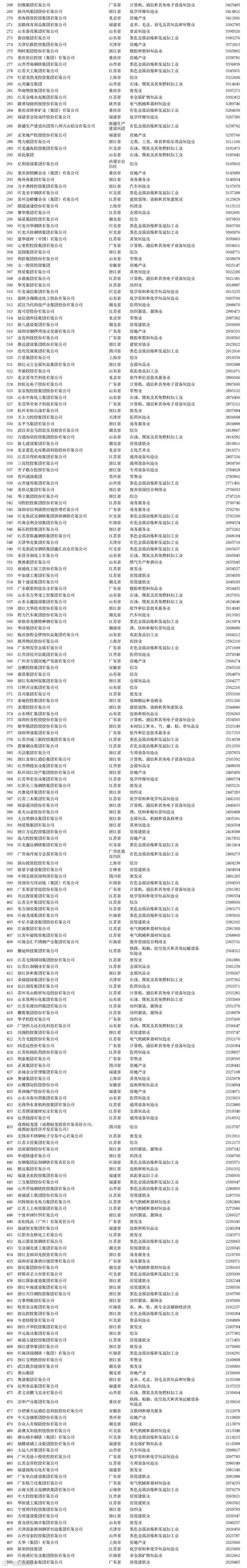2020中国民营企业500强全榜单