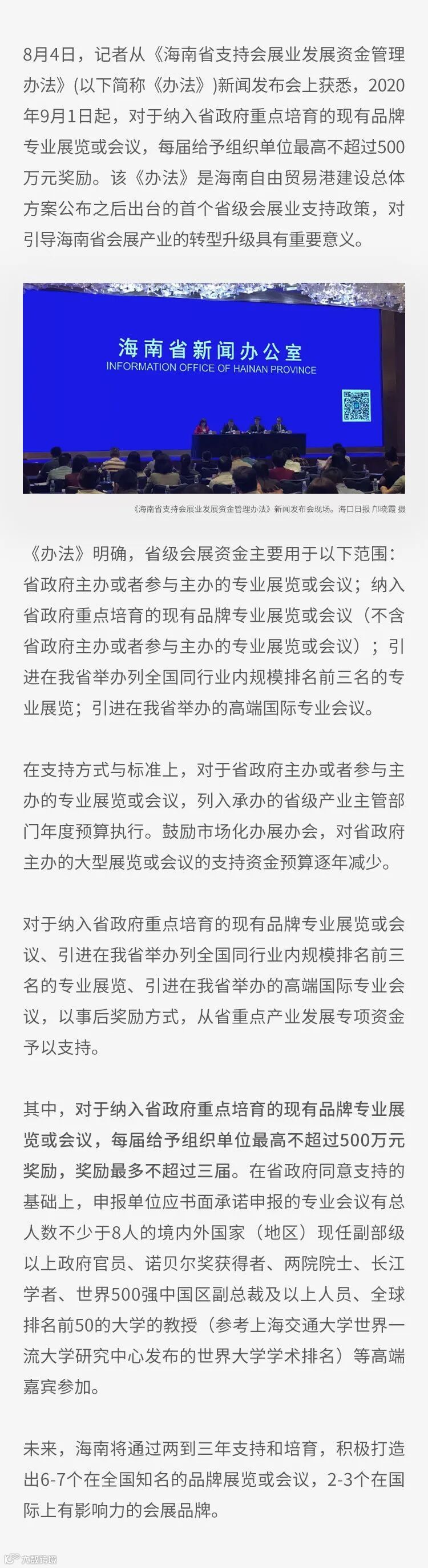 新规!9月起,在海南举办这些会展最高可获500万元奖励→