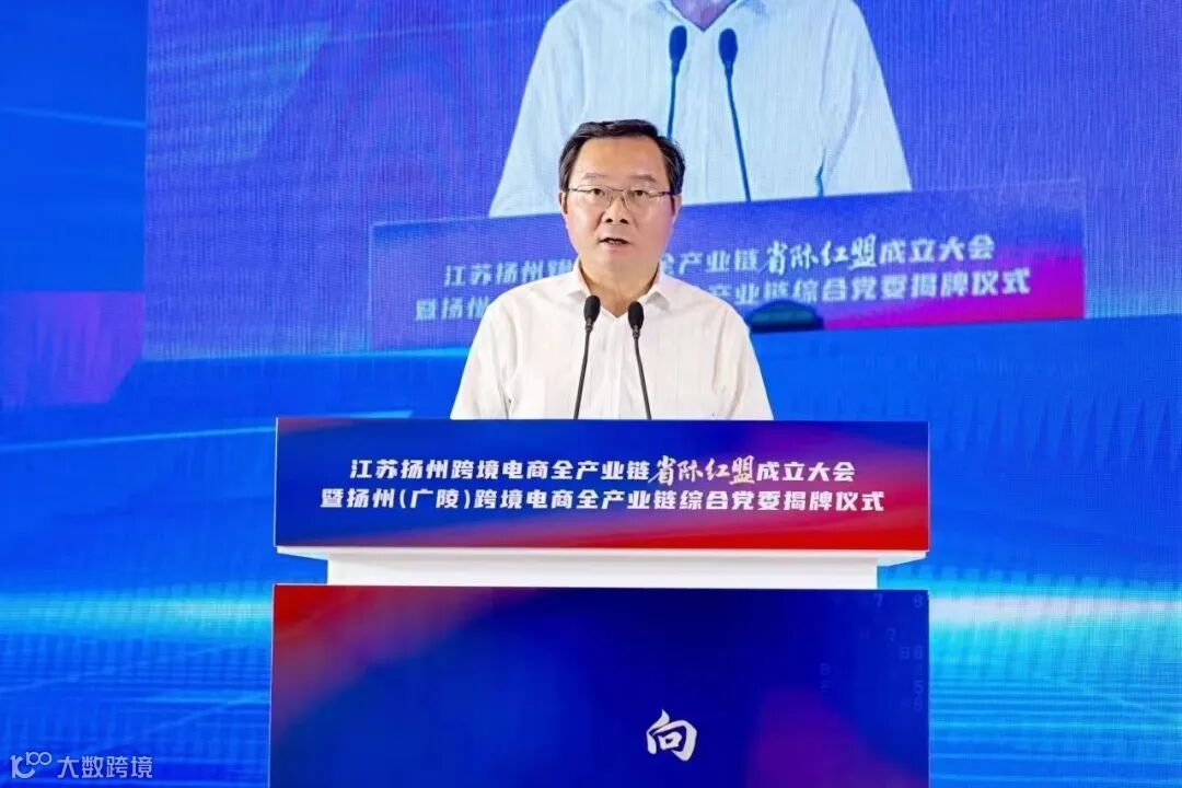 焦庆标在致辞中表示,跨境电商是外贸领域新质生产力的代表,扬州作为国家级跨境电商综合试验区,率先举办跨境电商全产业链省际红盟成立大会,是“市域”向“省际”拓展、“产业链”向“供应链”延伸、“线下”向“线上”迈进、“单一主体”向“多元参与”转型的探索之举,也是“红色引擎”赋能新兴领域的务实之举,扬州将紧抓机遇,积极拓展“组织圈”、培育“融合圈”、打造“服务圈”,凝“新”聚力、“跨”无止境,让党旗在新兴领域高高飘扬,实现“党建强”引领“产业强”。