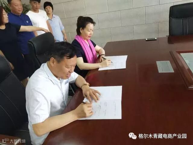 青藏电商产业园董事长水彦民与山西省电商企业工商联主席赵素卿签订战略合作协议