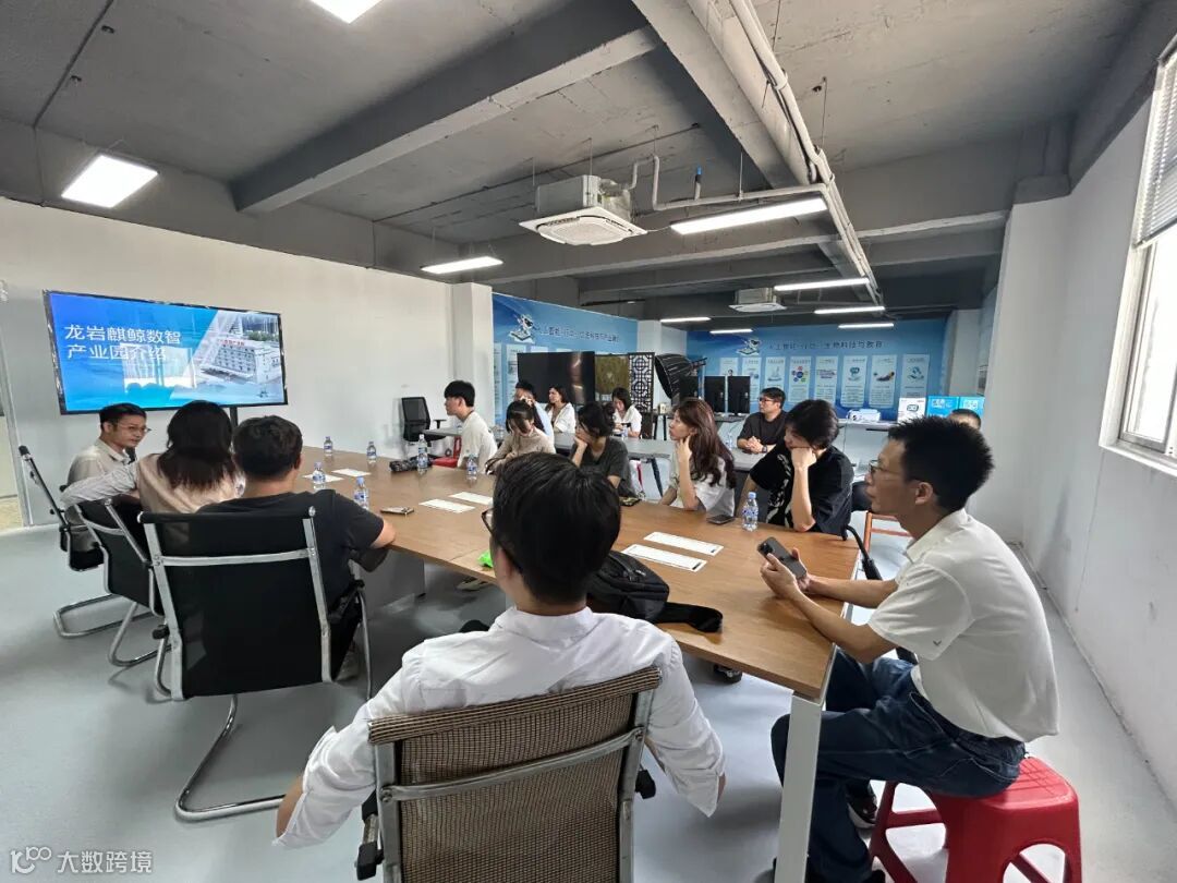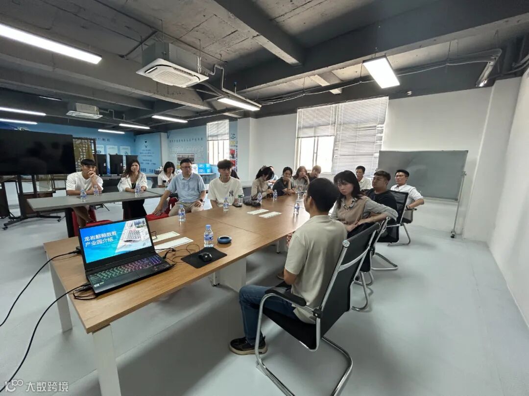随后,龙岩技师学院(工匠学院)龙岩市台青研学实践营一行来到了园区的数智电商产业服务中心。在这里,他们详细了解了园区致力于为电商商家及生态伙伴提供的全场景、全链条、全方位一站式赋能服务,包括商家服务、内容制作、产品营销、供应链选品、人才培训、政策申报支持等多个方面。在运营体系及企业服务模式上,麒鲸数智电商产业园开展个性化、差异化运营管理,构建以商家为核心的电商运营服务体系,打造 “商流 + 信息流 + 物流 + 人才流 + 资金流” 的 “1 + 1 + 1 + 6 + 1” 电商产业服务中心和电商全链条业态。
