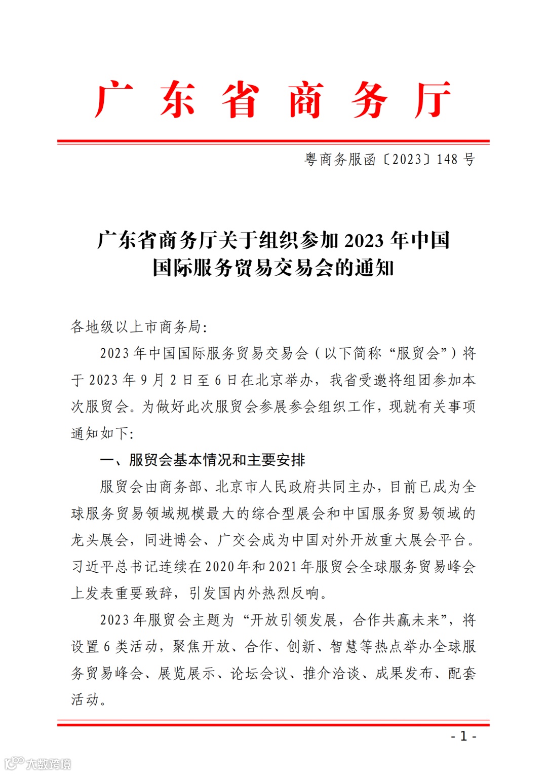 转发:关于组织参加2023年中国国际服务贸易交易会的通知