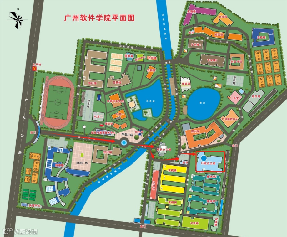 2.自驾车导航“广州软件学院”华南快线钟落潭出口