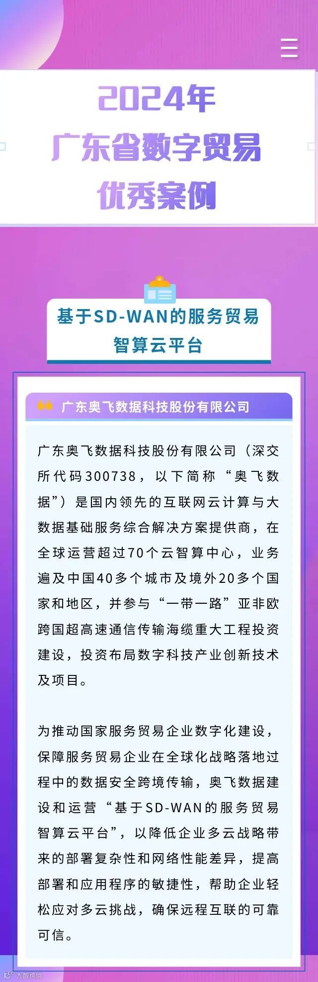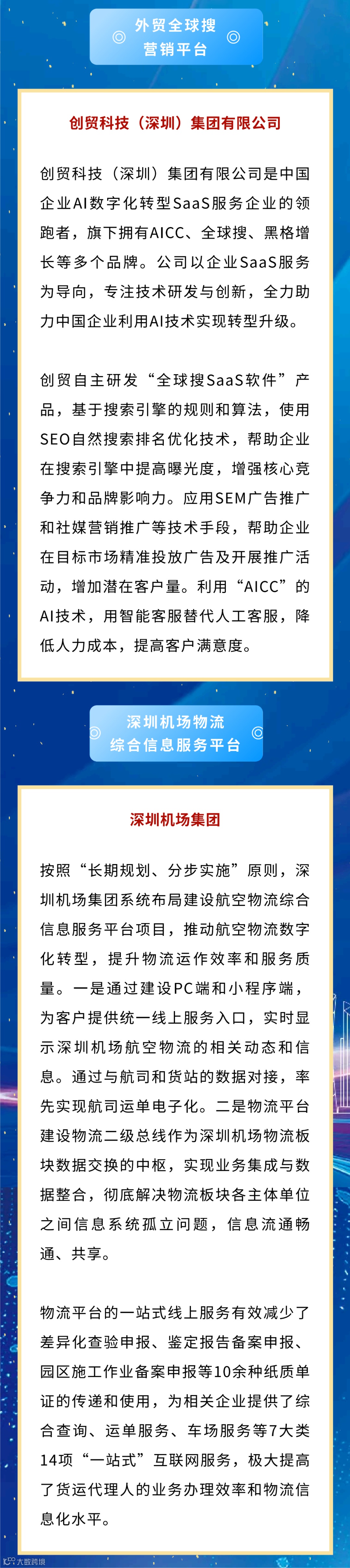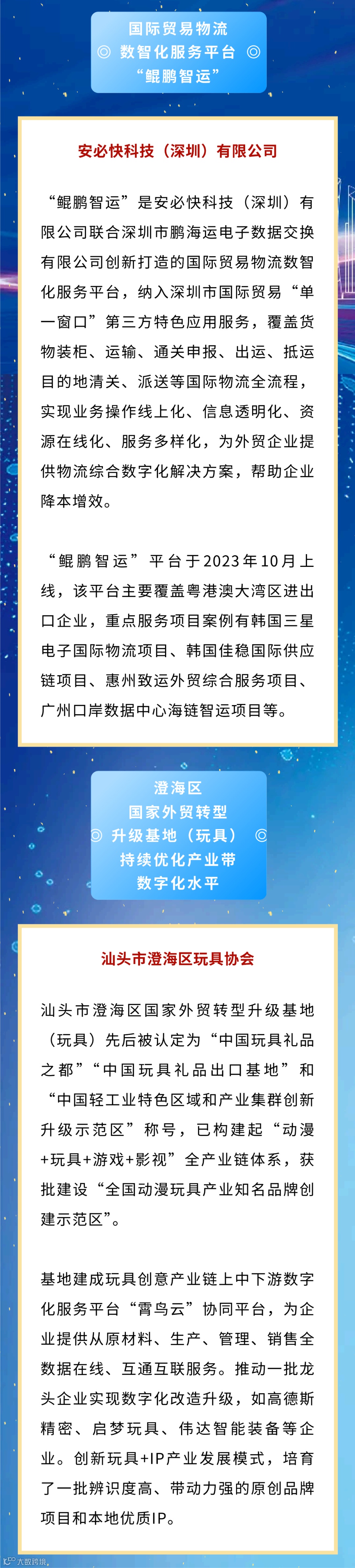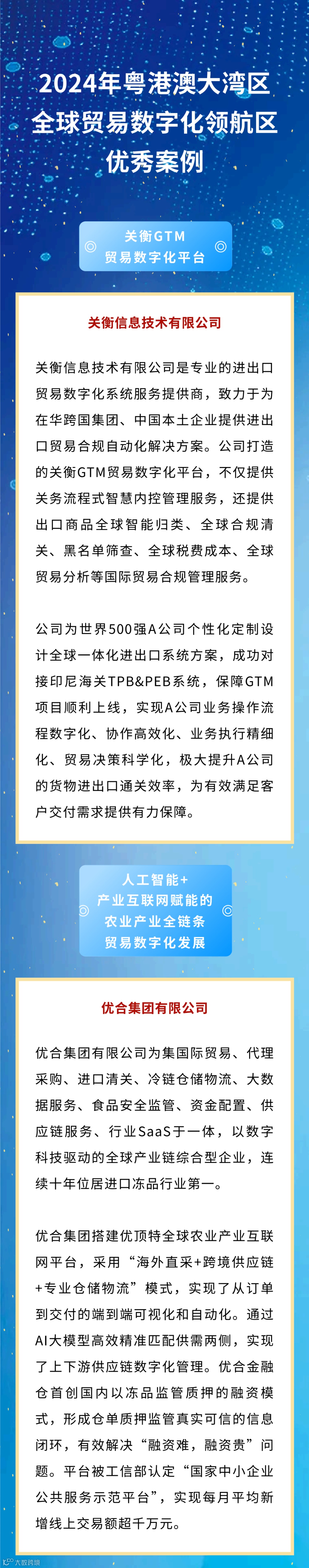 大会还特别发布11个“2024年广东省数字贸易优秀案例”和22个“2024年粤港澳大湾区全球贸易数字化领航区优秀案例”。
