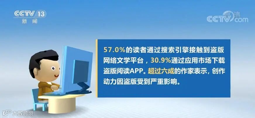 近年来,互联网信息技术不断进步,让盗版行为变得形式更加隐蔽多样。2021年网络文学盗版损失规模为62亿元,盗版网络文学平台、搜索引擎和应用市场已成为网络文学盗版侵权的主要途径。57.0%的读者通过搜索引擎接触到盗版网络文学平台,30.9%通过应用市场下载盗版阅读App。超过六成的作家表示,创作动力因盗版受到严重影响。