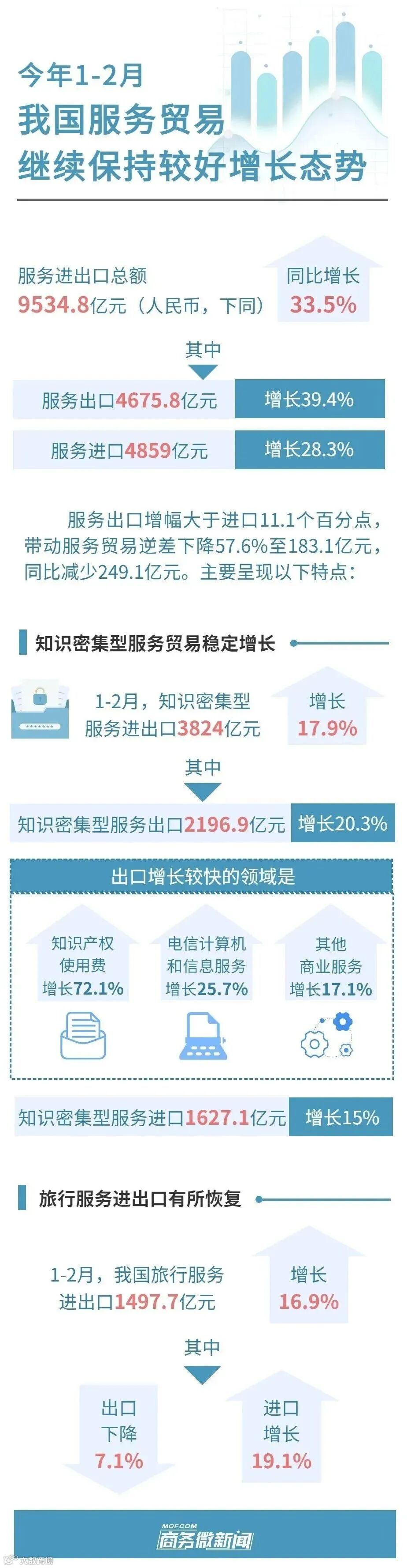 增长33.5%!1-2月我国服务贸易继续保持较好增长态势