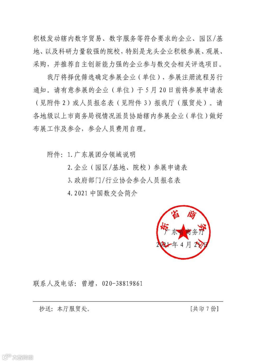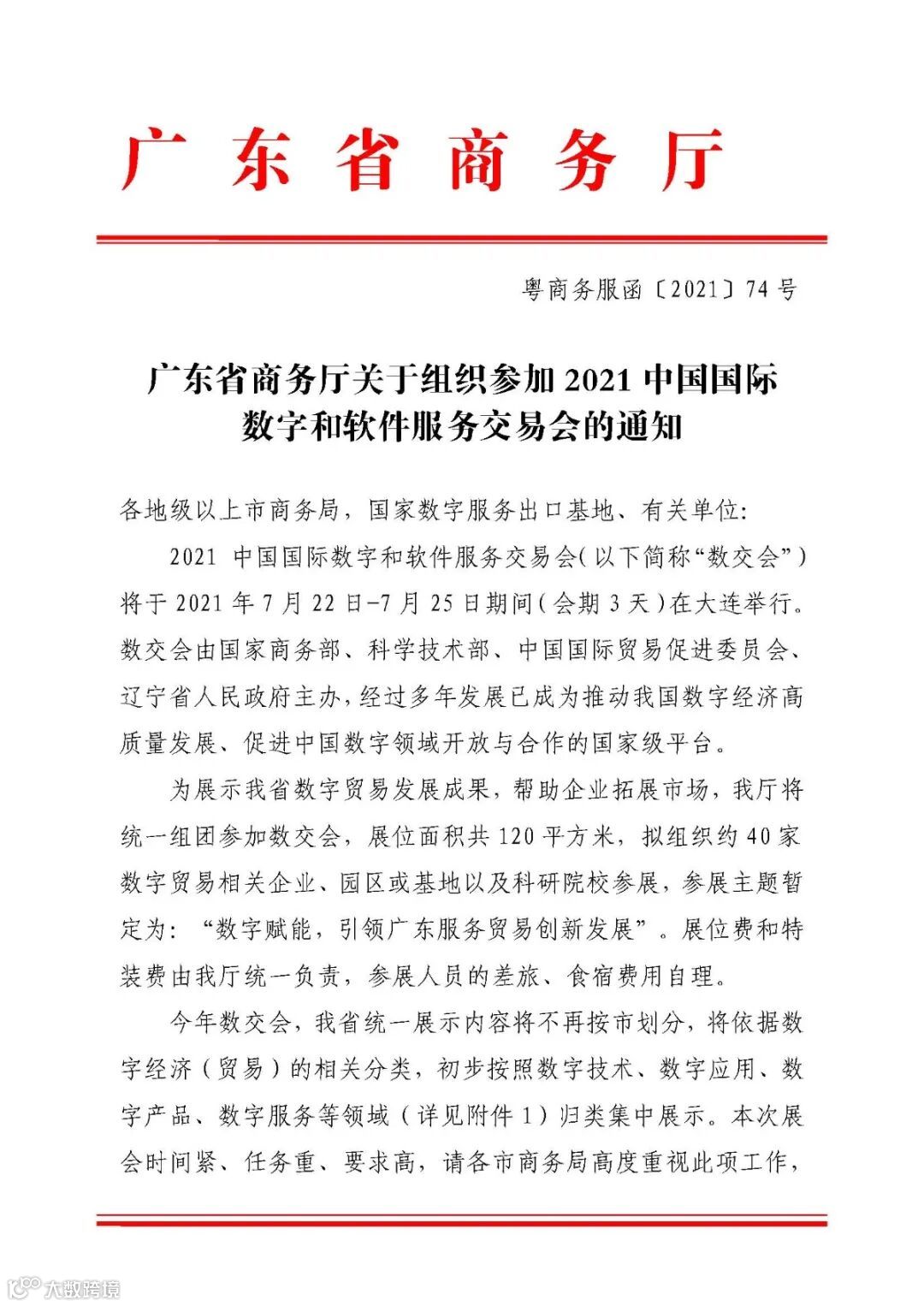 广东省商务厅关于组织参加2021中国国际数字和软件服务交易会的通知