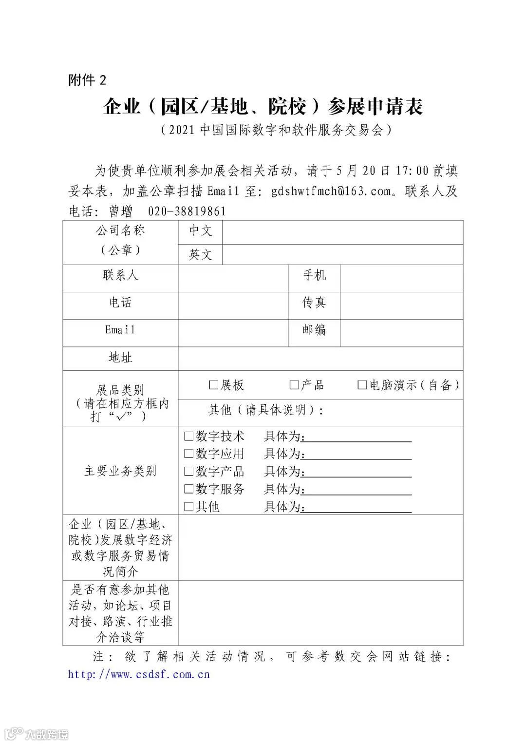 企业(园区/基地、院校)参展申请/政府部门/行业协会参会报名表