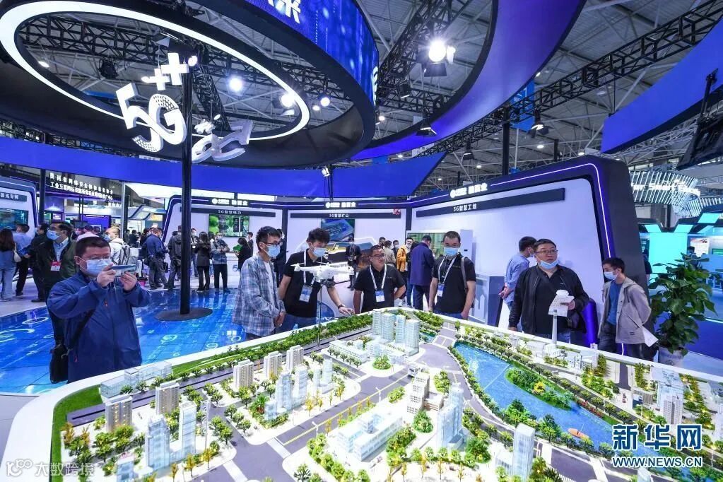 参会者在2021中国国际大数据产业博览会上参观5G智慧城市模型(来源:新华网)