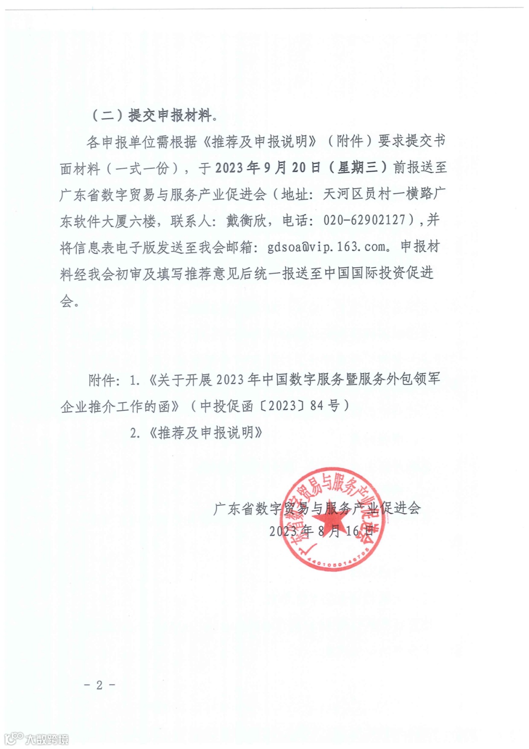 关于开展2023中国数字服务暨服务外包领军企业推介工作的函.pdf