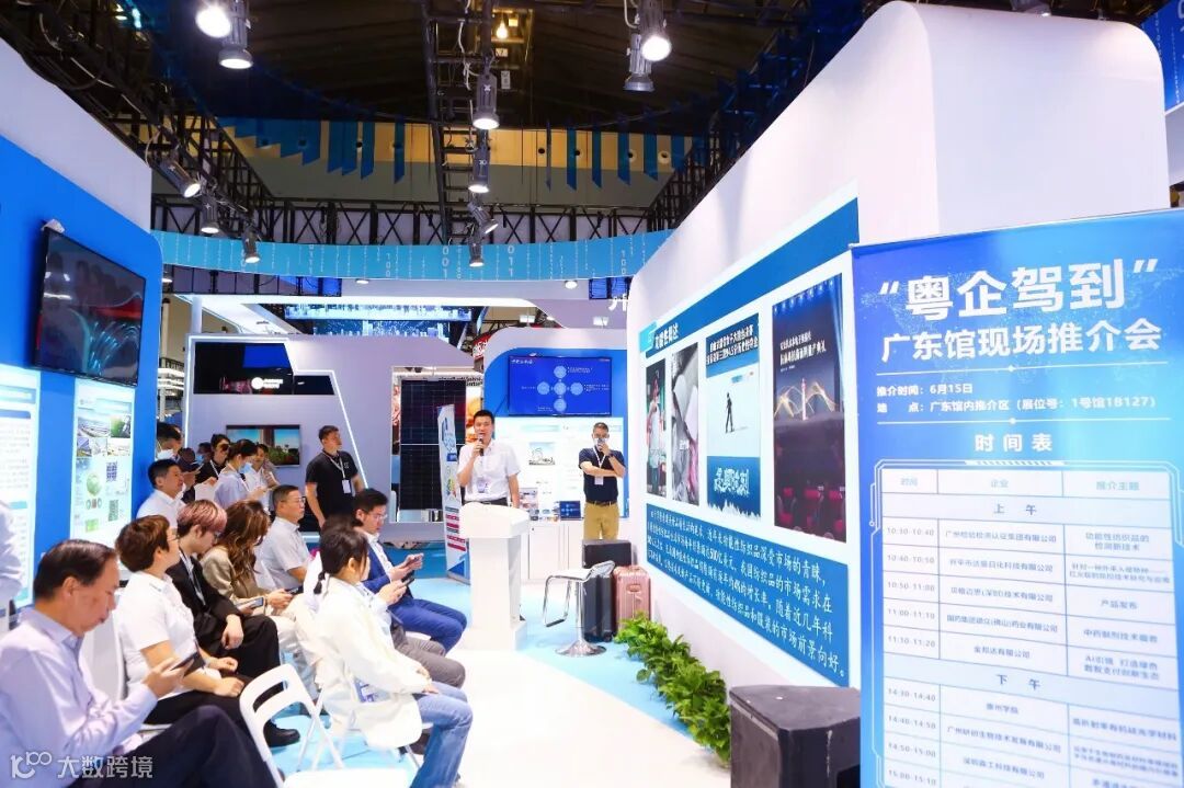 开展当天,广东省商务厅会同广东省科技厅在广东商务展馆举办了“粤企驾到”推介活动,来自广州检验检测集团有限公司的功能性纺织品的检测新技术、金邦达有限公司的AI数智支付、国药集团德众(佛山)药业有限公司的中药制剂技术服务、惠州学院的高折射率有机硅光学材料、深圳森工科技有限公司的多通道生物医药3D打印设备等9家单位的优秀项目成果,吸引了现场许多业内外人士的关注。现场参展单位与观众交流洽谈气氛活跃,参展成效良好。