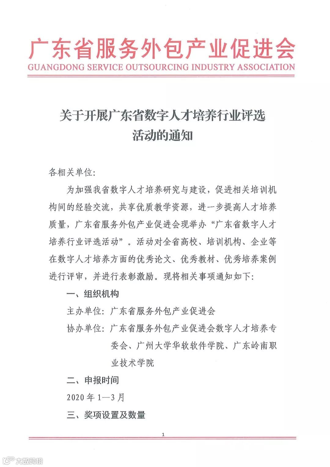 关于开展广东省数字人才培养行业评选活动的通知