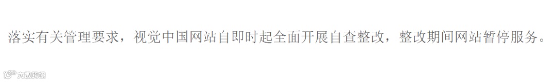 随后,中证君打开视觉中国的网站发现,页面已经是一片空白,只有网页中间的一行字:落实有关管理要求,视觉中国网站自即时起全面开展自查整改,整改期间网站暂停服务。