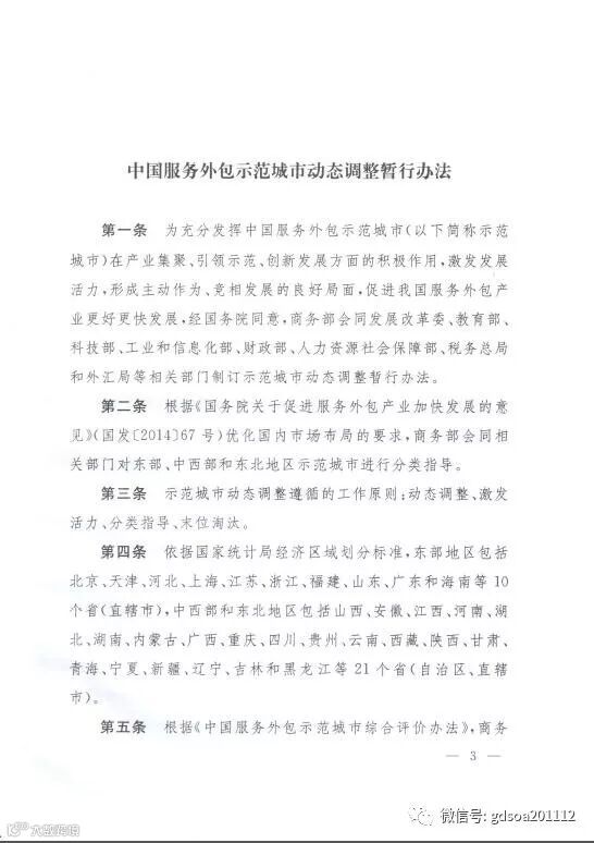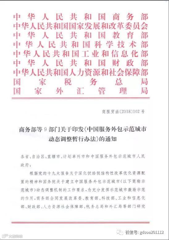 导读:日前,中华人民共和国商务部联合发改委、教育部、科学技术部、工信部、财政部、人社部、税务总局以及外汇管理局等部门,共同发布关于印发《中国服务外包示范城市动态调整暂行办法》的通知