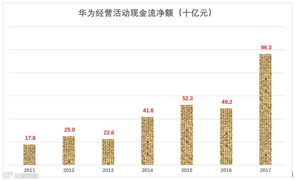 华为现金流更加惊人,2017年经营活动产生的现金流净额达963亿,折合142.8亿美元。日均3912万美元,可购黄金3万盎司(853公斤)。对华为来讲,日进斗金不算什么。