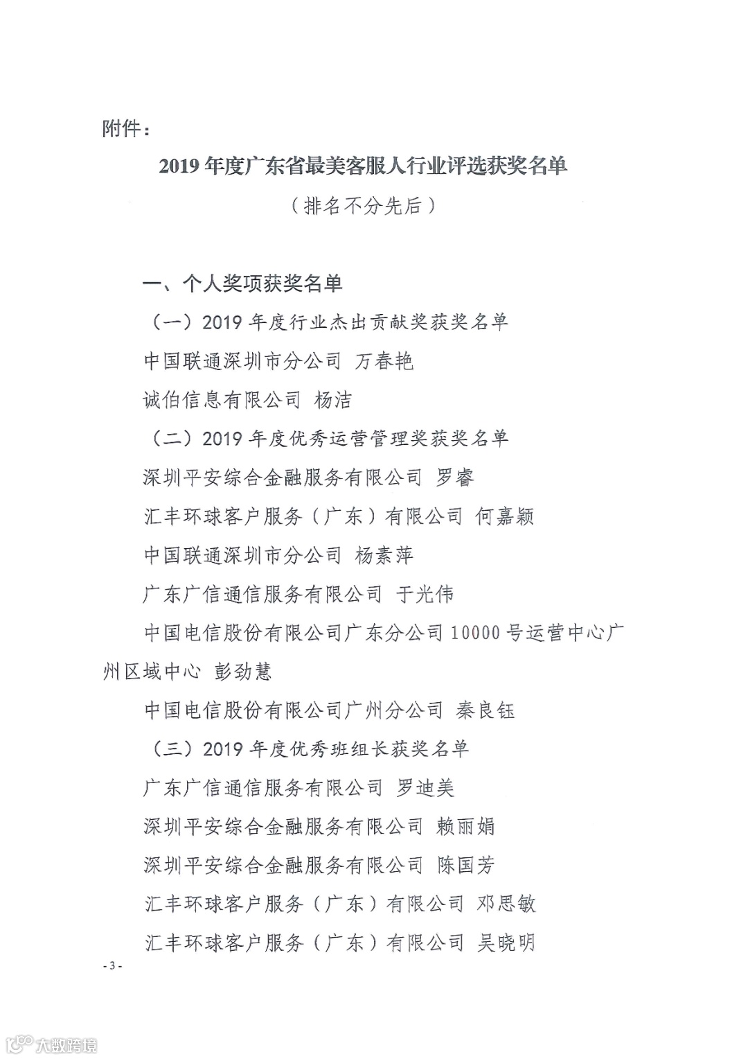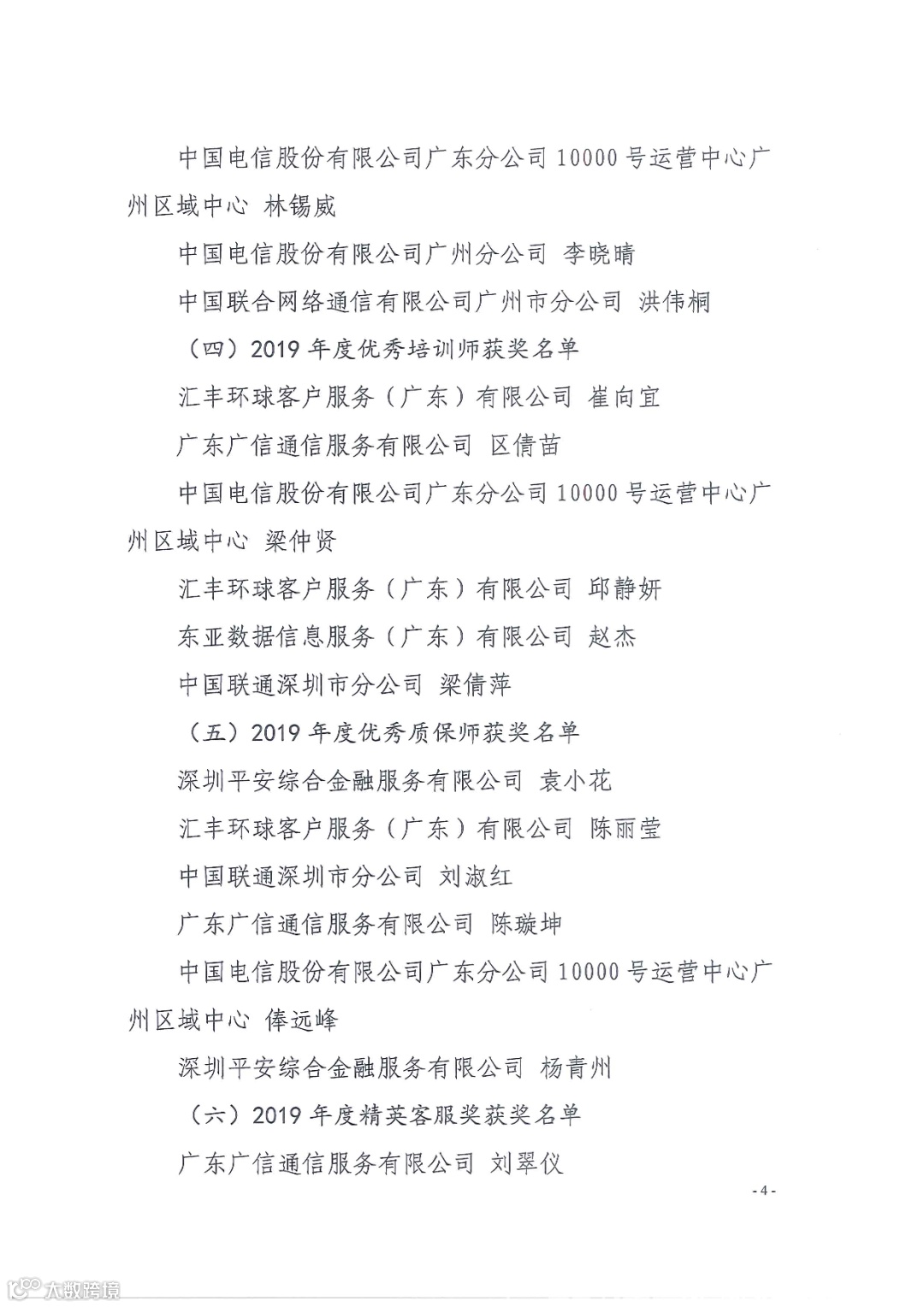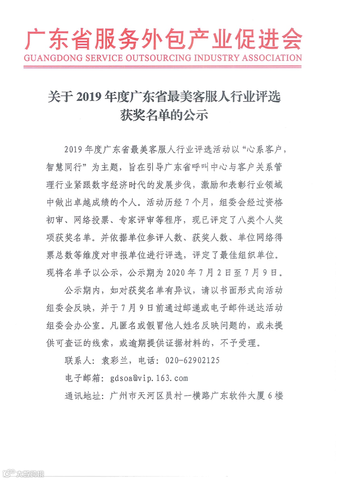 关于2019年度广东省最美客服人行业评选获奖名单的公示