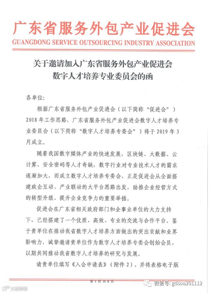 关于邀请加入广东省服务外包产业促进会数字人才培养专业委员会的函