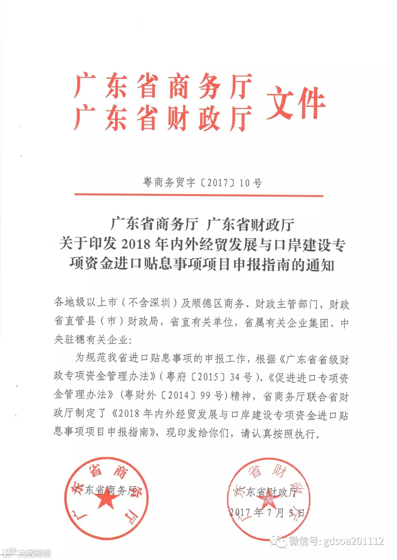 转发 广东省商务厅 广东省财政厅 关于印发2018年内外经贸发展与口岸建设专项资金进口贴息事项项目申报指南的通知