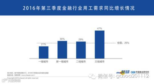 2016年上半年,在互联网金融以及相关政策的推动下,金融行业的用工需求持续走高。但受到中国经济转型、资本撤出等不利因素的影响,三季度金融行业的用工需求同比增加26%,也低于全国35%的平均增幅。