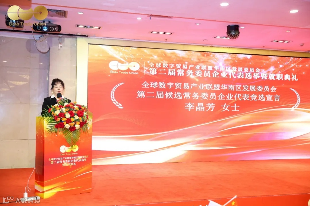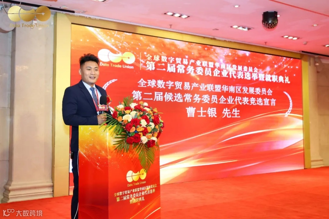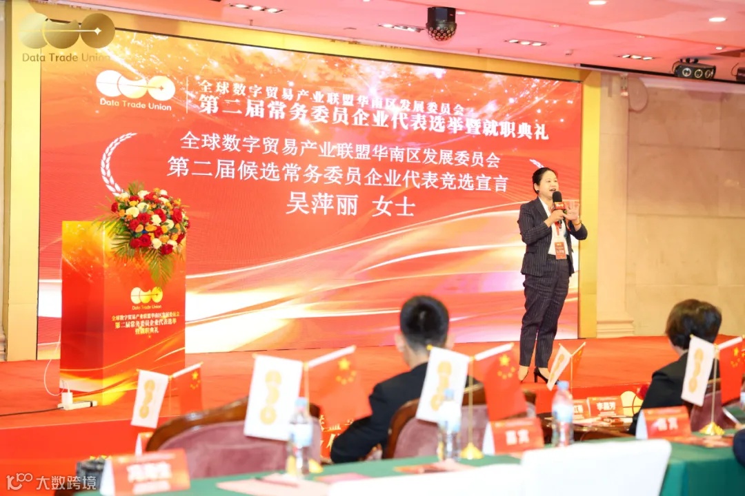 在中国区副秘书长王志刚介绍了常务委员企业的职责后,华南区第二届候选常务委员企业代表逐一上台发表竞选宣言,从企业的发展战略、对华南区数字贸易产业的贡献以及未来规划等多个角度进行了阐述,表达了他们致力于推动数字贸易产业发展的决心和信心。