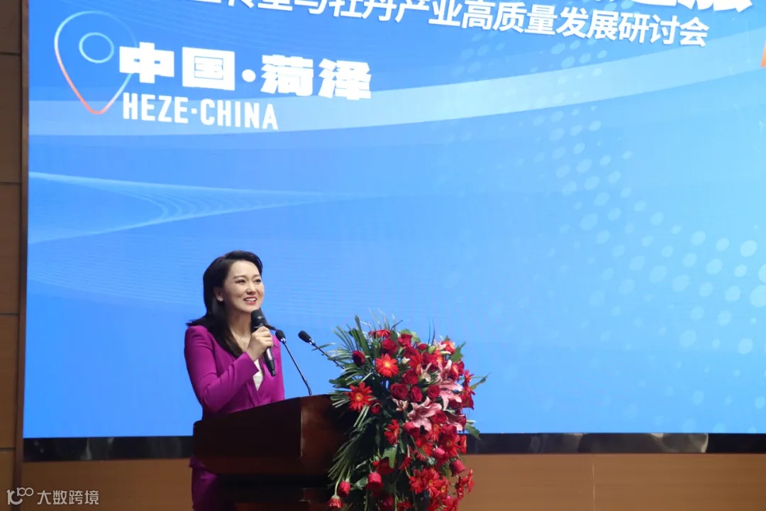 菏泽尧舜牡丹生物科技有限公司代表张孟威随后进行了致辞,分享了该公司在数字贸易应用上的创新实践。他指出,数字贸易为公司产业开辟了新的发展渠道,极大地扩大了市场触达范围,这为传统产业的转型提供了新的思路和模式。