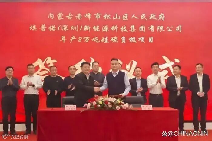 1月19日,内蒙古赤峰市松山区政府与埃普诺(深圳)新能源科技集团有限公司年产2万吨硅碳负极项目签约仪式在西安市举行。