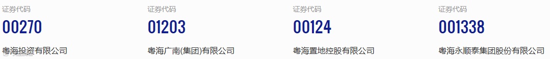 上市公司:粤海投资(港股)、广南集团(港股)、粤海置地(港股)、粤海永顺泰(A股)。
