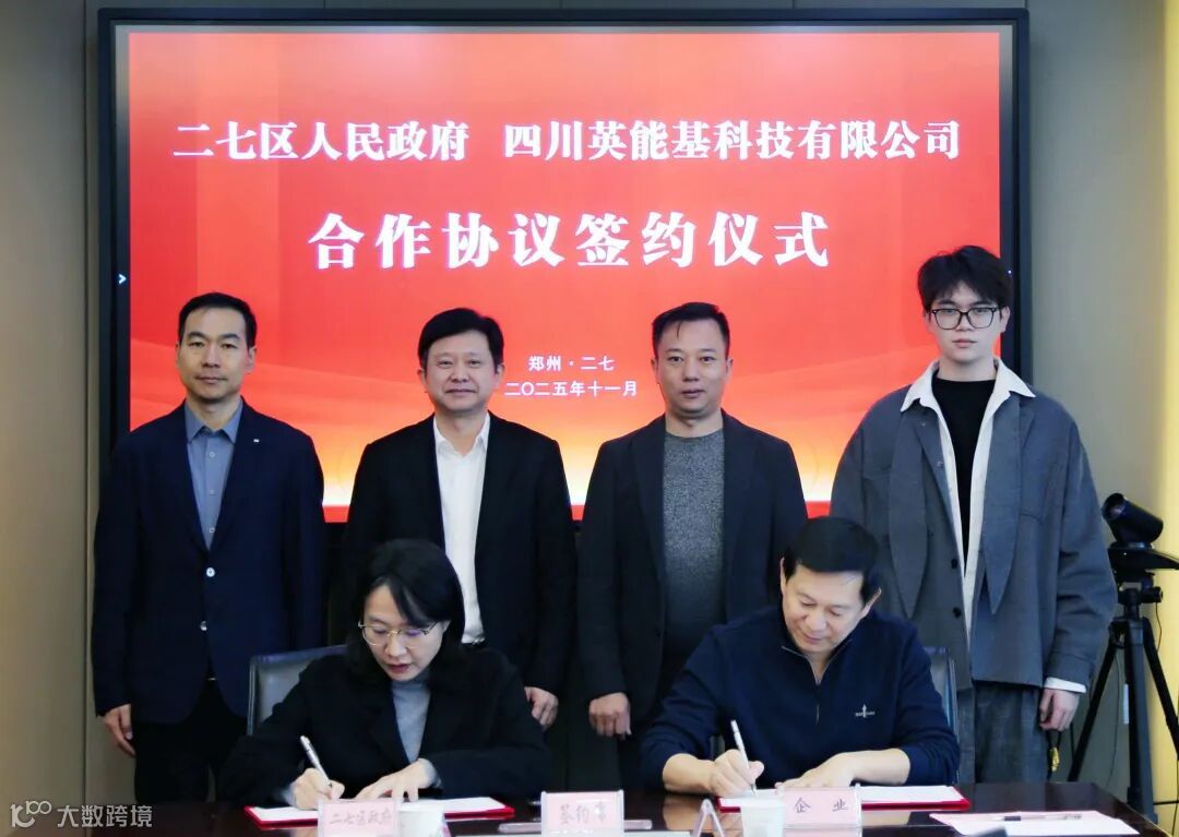 二七区副区长常淼与四川英能基科技有限公司董事长覃恒志代表双方签约。区委常委、副区长赵静波,二七经开区管委会主任贾新建,金达正明矿业有限公司董事长李金豹,英能基(河南)新能源科技有限公司法人覃越等参加活动。