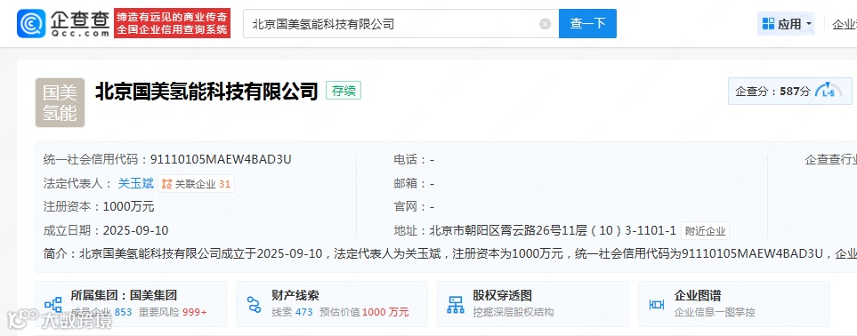 2025年9月10日,成立北京国美氢能科技有限公司,进军氢能产业 -
