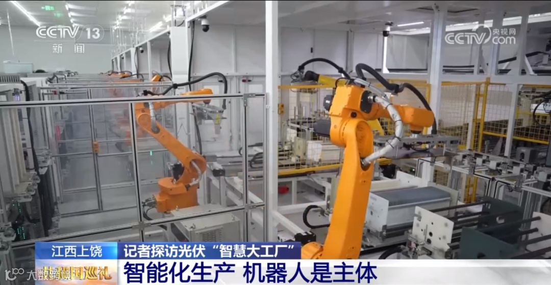 整条生产线上的主角是各类工业机器人,大约有上千位机器人员工。从运输加工到检测分选,这里的各个工艺环节全部由机器人完成,在切片车间,负责智能分选的机器,每分钟能完成166片电池切片的分选工作,效率是人工作业的5倍。生产线上的运输工作,也是由运输机器人全程配送。在电池镀膜、性能检测等生产环节中,机械臂同样游刃有余,精准完成生产工序。