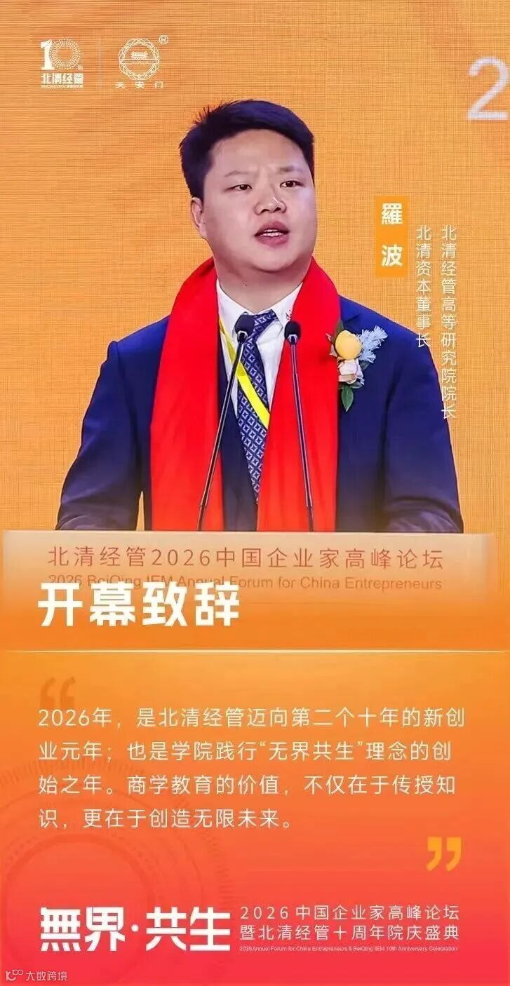 北清经管高等研究院院长、北清资本董事长 羅波:“2026年是北清经管迈向第二个十年的新创业元年,也是学院践行 “无界共生” 理念的起始之年;商学教育的价值,不仅在于传授知识,更在于创造无限未来。”