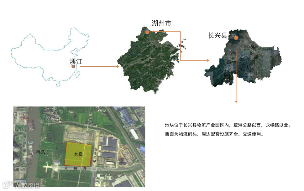项目位于湖州市长兴县物流园区内,地块位于疏港公路以西,永畅路以北。项目周边交通十分通畅。配套基础设施较全。