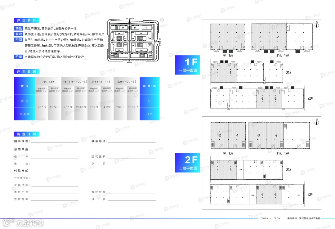 产品灵活适配:多拼厂房设计,二类抗震标准,框架结构,满足研发生产一体化需求。