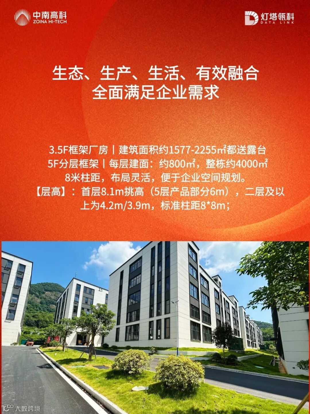 3.5F/5F 框架厂房,双拼、独栋、多层多种选择