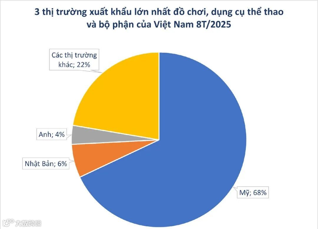 8月份,美国出口额也增长了200%以上。美国市场占越南玩具、体育用品及零部件出口总额的近68%。