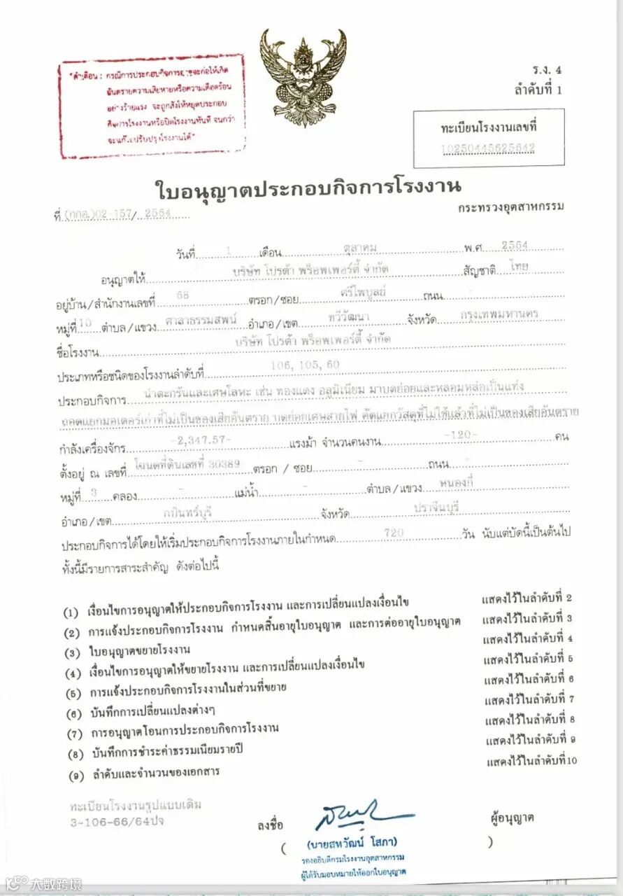 工厂有泰国环保部门批准ESA环保许可证,有泰国工业部批准的105废金属分拣证、106废金属二次生产证、60熔炉冶炼生产许可证,工厂有政府批准的废金属进口批文,可直接进口废金属以及矿渣。