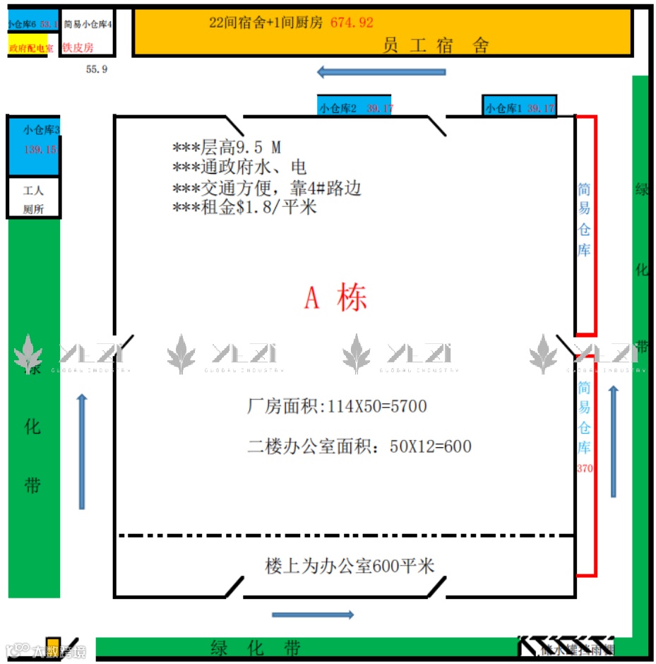 出租价:1.8$/㎡(不含税)