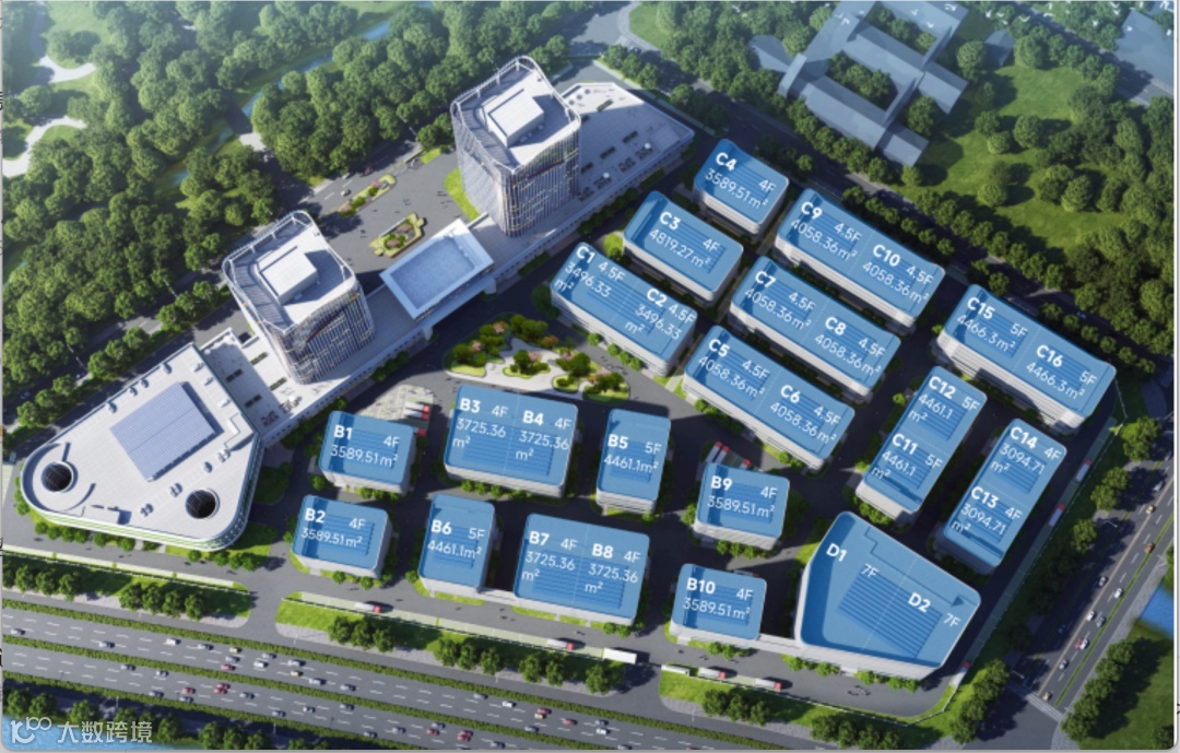 灰色区域为产业体系服务平台(研发中心、孵化中心、会议中心及停车、物业配套服务)