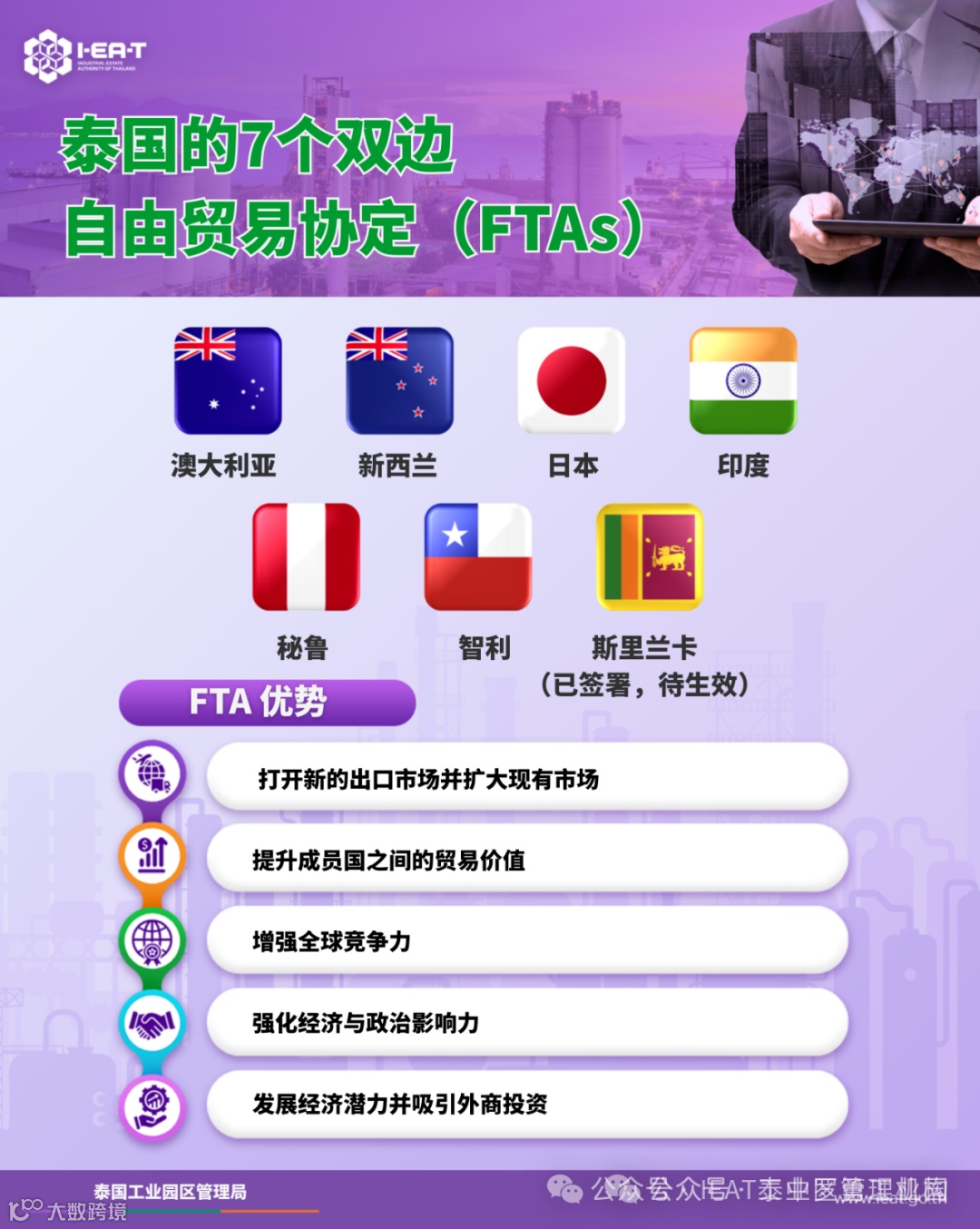泰国已签署的7个双边自由贸易协定包括: