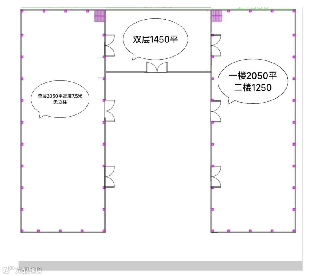 【分布】A栋一楼2050平米,B栋一楼2050平方,B栋 二楼1250平方 办公楼 1450平方