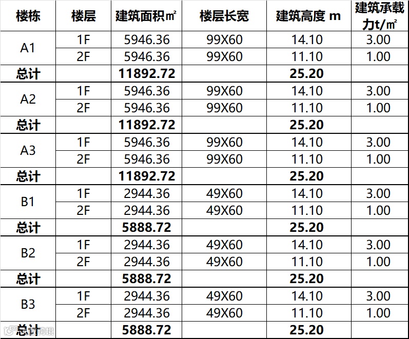 承 重:1楼-3吨/平,2楼-1吨/平