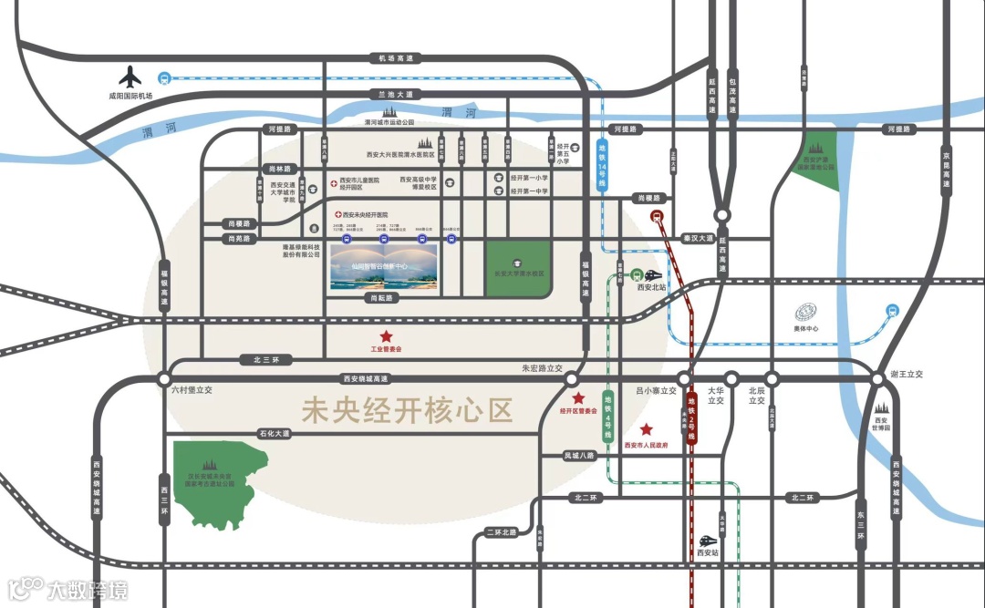 3、距离西安北站6公里,15分钟到达;距离西安站12公里,30分钟到达,距离西安咸阳国际机场13公里,30分钟内到达,交通便利,区位优势明显