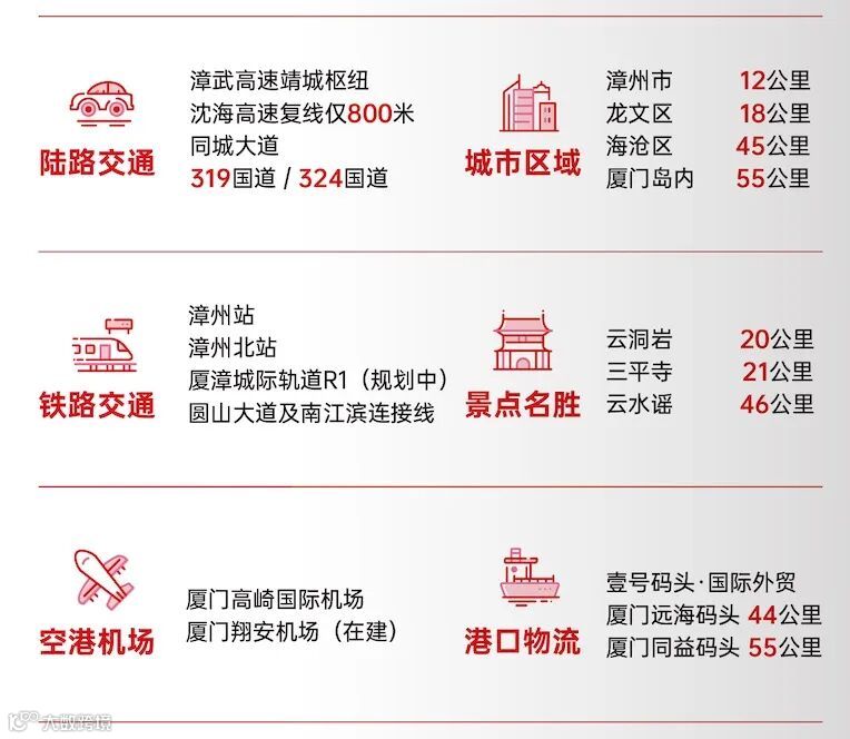 覆盖5大铁路/动车站(漳州站、漳州东站、角美站、厦门北站、厦门站)、3大机场(厦门高崎机场、翔安新机场、泉州晋江国际机场)。厦漳同城化加速融合,立体交通网络四通八达,物流优势凸显。