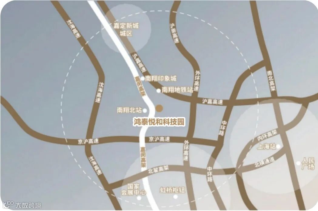 鸿泰悦和科技园,位于上海市嘉定区南翔镇金昌西路 1188弄, 由政府与实力企业联合打造, 地理位置优越, 紧邻市区和北虹桥核心商务区,距上海市区直线距离仅约16公里,与嘉定新城主城区相距12公里,距离虹桥机场约10公里,市域铁路嘉闵线贯穿嘉闵南北,4站可抵达虹桥枢纽,高铁1小时通达江浙沪。距离11号线南翔站仅2公里,园区设有免费班车往返。