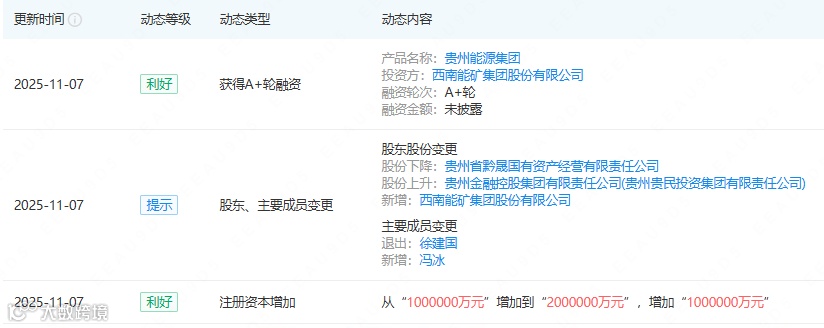 据悉,贵州能源集团有限公司成立于1997年1月16日,属省管大(一)型国有全资公司,是省委、省政府于2023年2月对盘江煤电集团和乌江能源集团进行战略性重组成立的大型能源企业。旗下拥有盘江股份、水矿控股、乌江能投三家大(二)型企业和能源电投、林东矿业、中城能源等十四家二级企业,其中,盘江股份、贵州燃气是集团旗下上市公司。