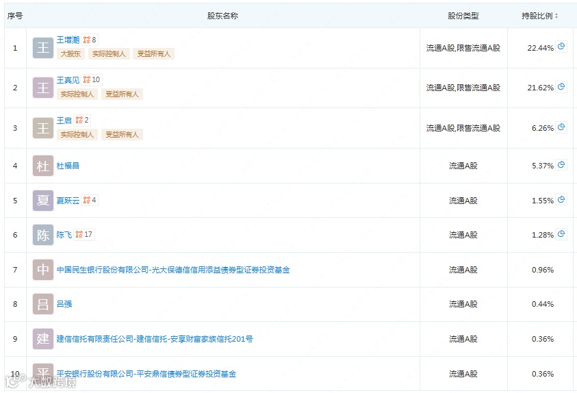 股权结构:法定代表人王真见,参保人数514人,高管包括副董事长王增潮、董事吴江华等,10大股东持股情况如下:
