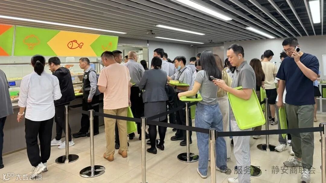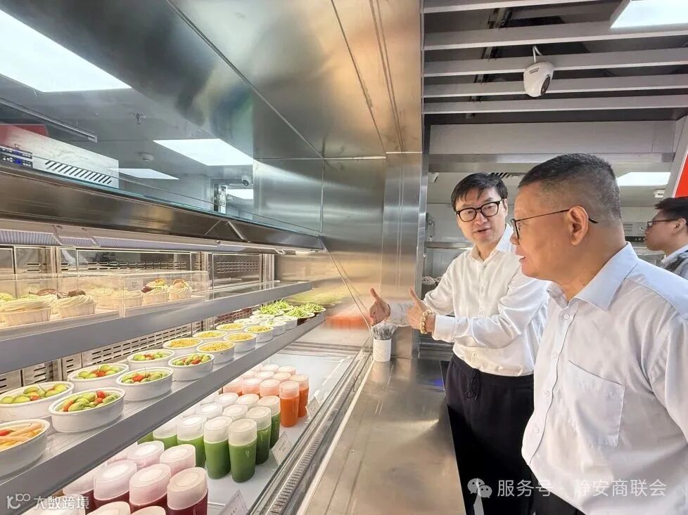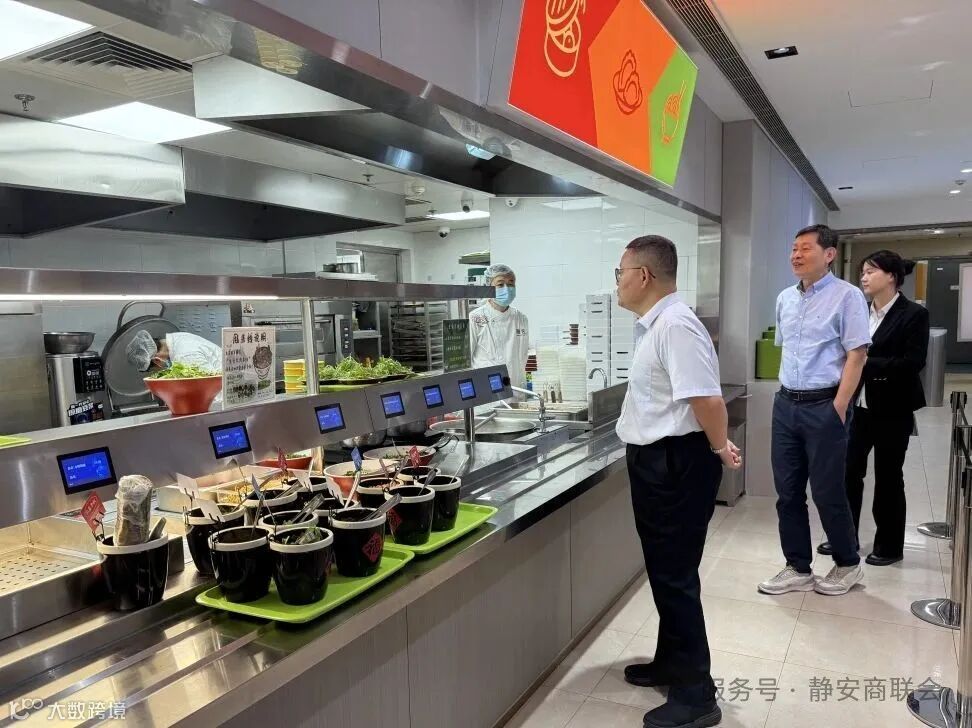 7月11日,上海现代服务业联合会副会长、商务服务专委会主任叶坚华一行走访静安嘉里中心臻味坊·汉宫白领餐厅,实地感受静安白领午餐政府事实工程,了解白领群体的用餐需求。