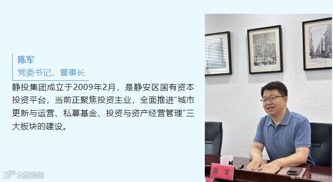 座谈会上,陈军董事长详细介绍了静投集团主业的发展情况,并就集团倾力打造的“JIC静投中心”甲级办公楼招商情况做了重点汇报,希望通过市服务业联合会平台进行招商推荐。