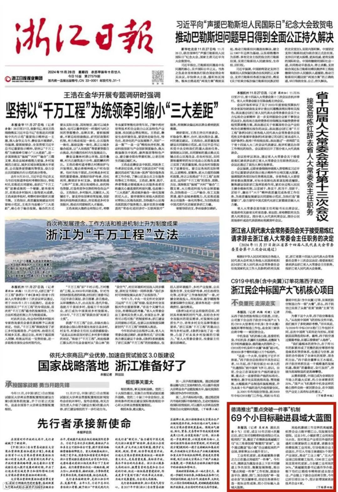 “这些事项重心主要在突破上。我们希望按照‘跳一跳摘桃子’的标准,让目标引领工作上层次、提质量。”德清县“重点突破一件事”专班负责人介绍,全县确定的69个“重点突破一件事”中,镇街层面重在抓重点、创特色,如大运河畔的千年古镇新市,紧盯“江南水乡古镇联合申遗”;水乡小镇钟管,利用全域整治推动“三生”空间重构。而部门层面,更加侧重于解决问题、形成经验、引领变革。