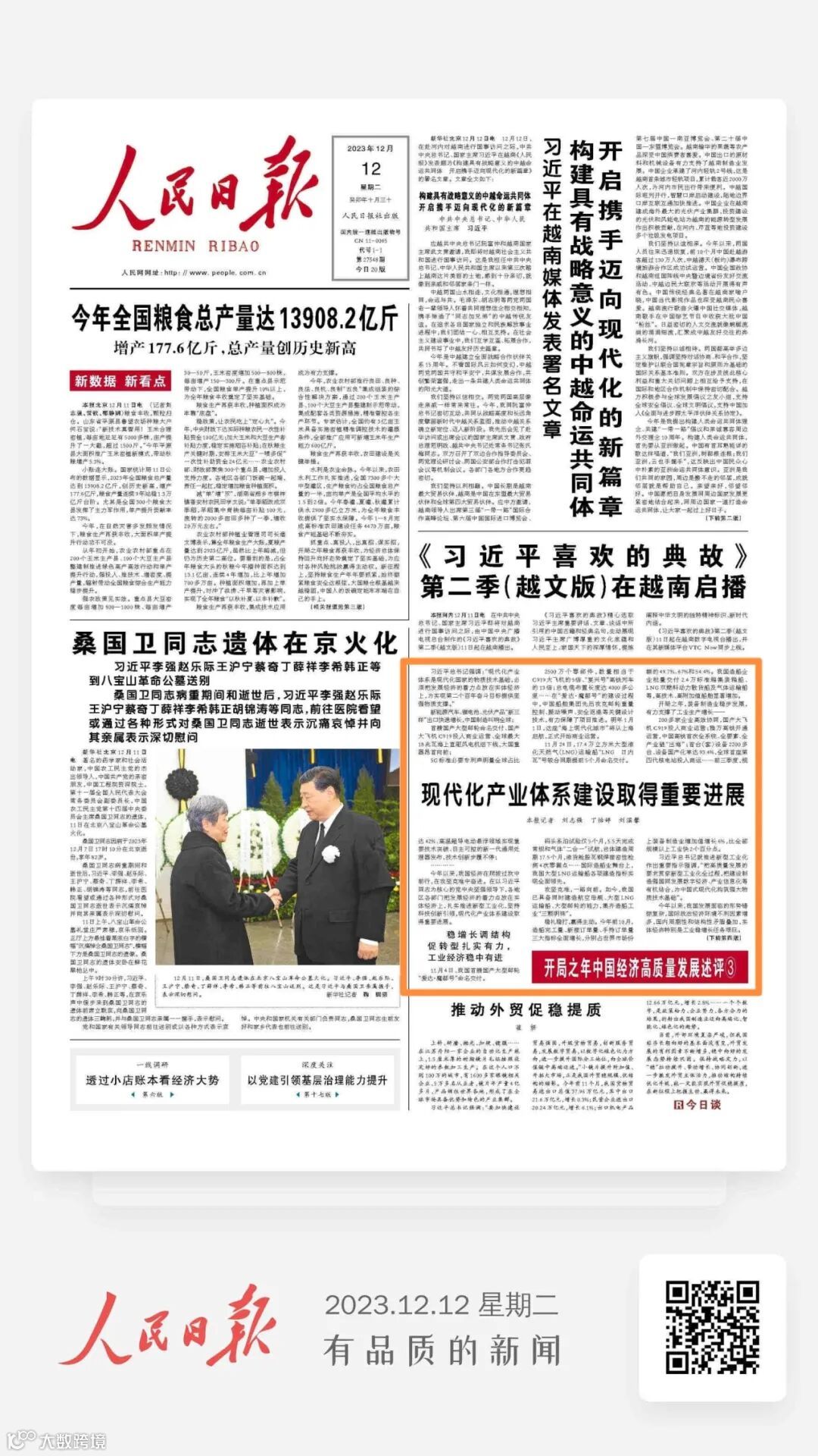 今日,《人民日报》头版刊登《现代化产业体系建设取得重要进展(开局之年中国经济高质量发展述评③)》,报道了以晶科能源为光伏产业典型代表的超级工厂。